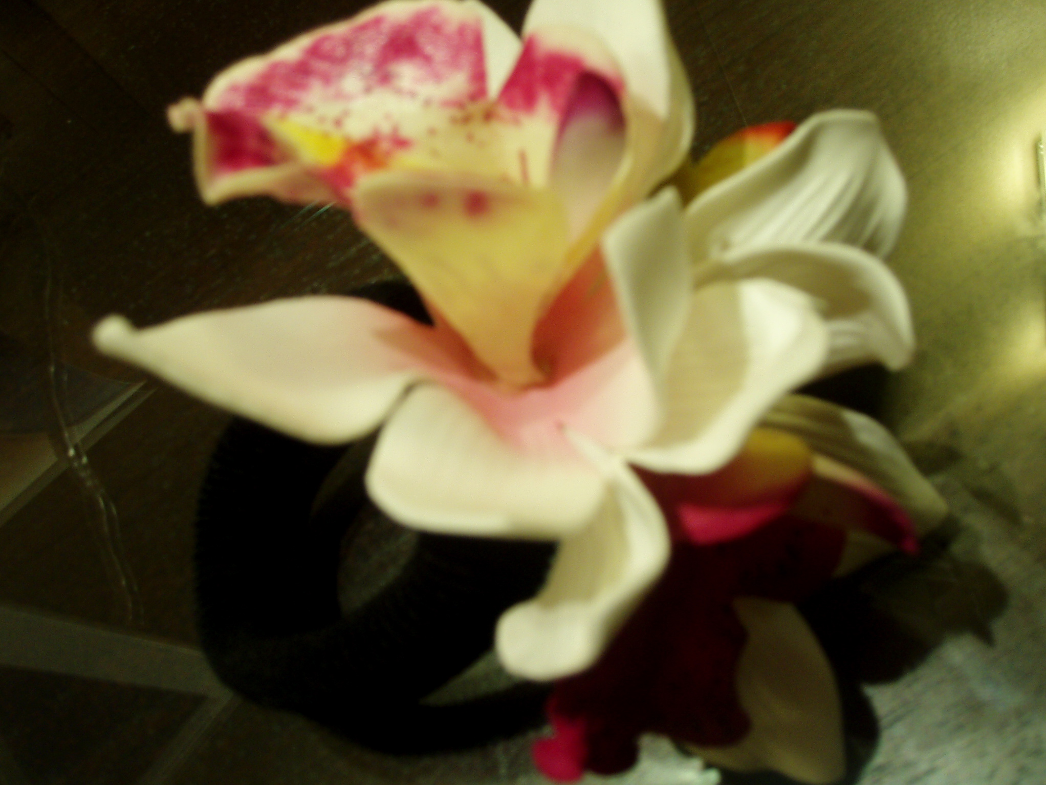 So i told her that I came across similar thing in Bangsar Village but with much more bigger flower! Didn’t know she’s into these kind of thing. So i decided to buy those for her (the hair clip with big flower) & a hair band (with the same flower too) for myself. I try it out & i fell in love with both. I decided to keep both for myself (dang!) & will go to the shop again to buy another one for her. *grin* Below is the picture of the flower hair accessories. 🙂