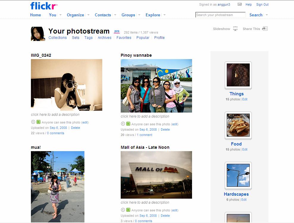 Finally! After months of waiting, I’ve upgraded my flickr album to pro! Meaning unlimited storage, set, collection, bandwidth!! weeeee!