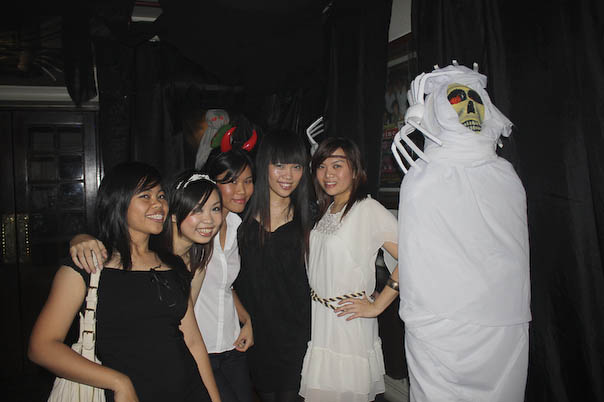 Halloween night spent with a few girl friends roaming from one club to another just like kids going from one house to another to get candy. tee-hee. No candies for young adult like us. So what did we get?
