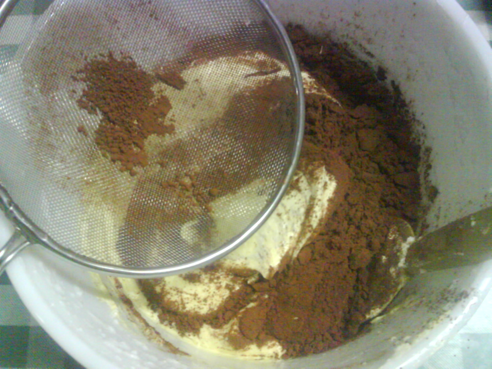 dsc01490Sieving cocoa into the other bowl meant for chocolate layer