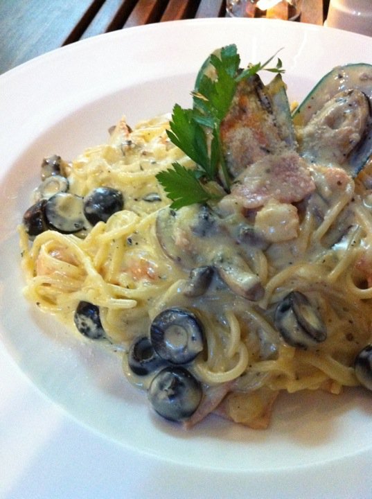 At first, I wanted to try pasta with a king prawn or something but the chef said the dish isn’t ready yet ( I was their first walk in customer though, haha). So I opt for carbonara spaghetti. It taste just like I want it to be (two thumbs up).