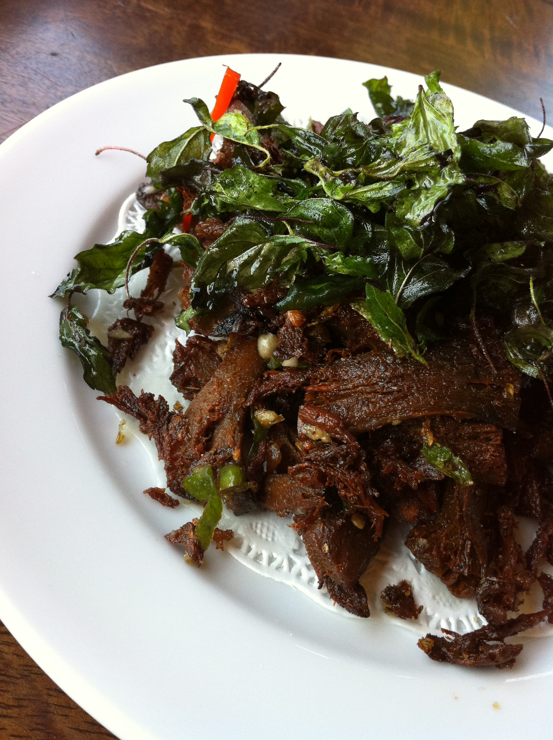 This is my personal favourite dish. It’s a black mushroom cooked with dried chilli and basil.