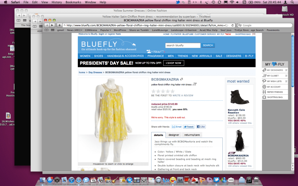 I saw those two lovely dresses from Nordstrom and some bluefly online store (both also unavailable though), but it doesn’t hurt to drool over it right?