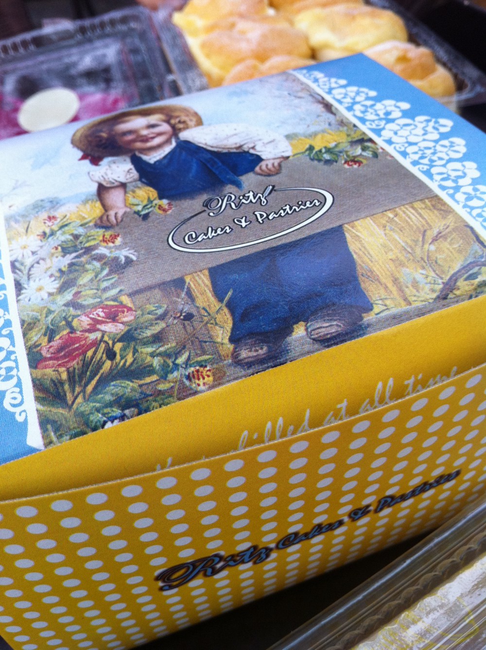 Seriously awesome english-looking box for the cakes. Just simply dandy.