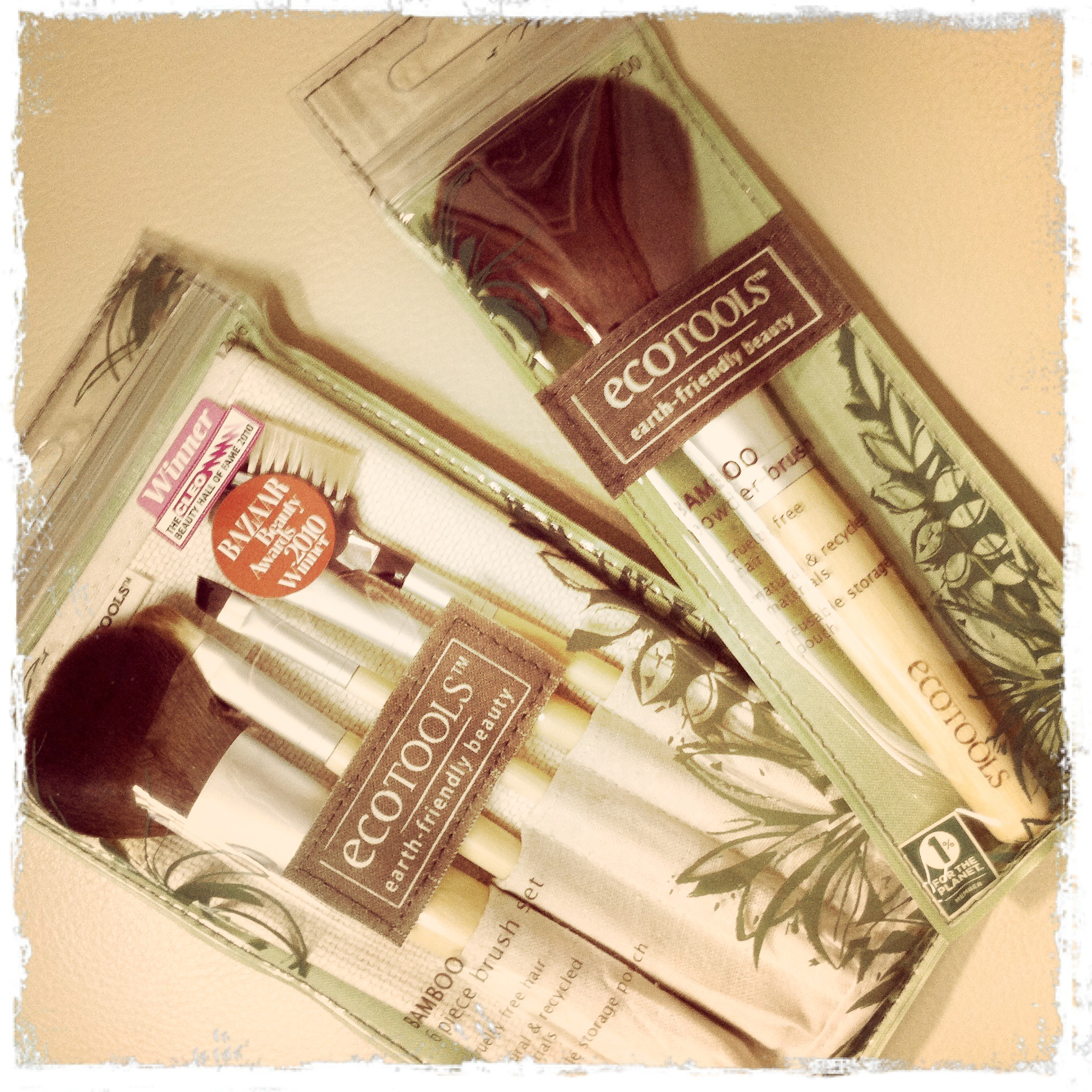 It is called ecotools with a 6 pieces brush set consist of blush, eye shading, eyeliner and concealer brushes,lash and brow groomer as well as the cosmetic brush roll.I bought an extra powder brush (I just love powder brush because it is so fluffy). The products is so-called earth-friendly because it uses bamboo as the handle, a recyclable aluminum ferrule and a synthetis taklon bristles that are 100% cruelty free (I ain’t going to judge this based on environmental ethics, I am just typing what it printed from the packaging).