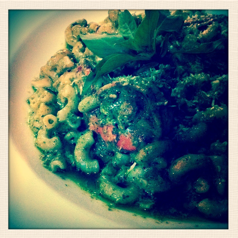 This is prawn presto macaroni. Yes it’s green, but it is yummy!