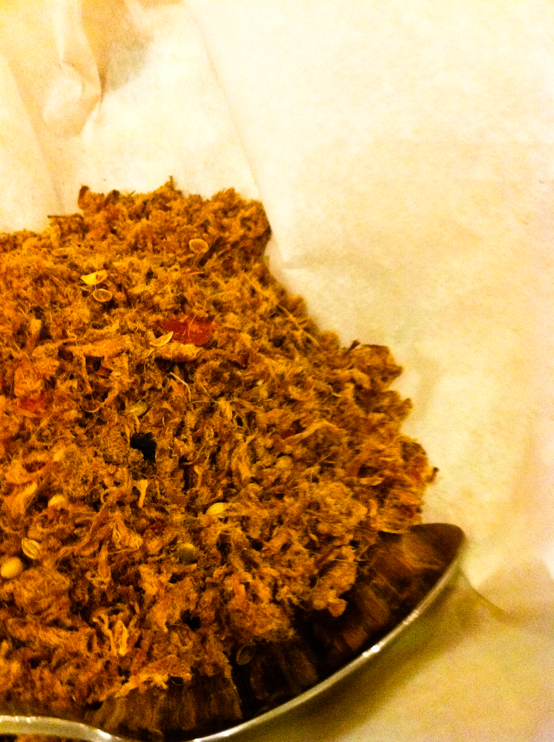 The serunding daging. Yep, you eat this with the ketupat or the lemang or equivalent