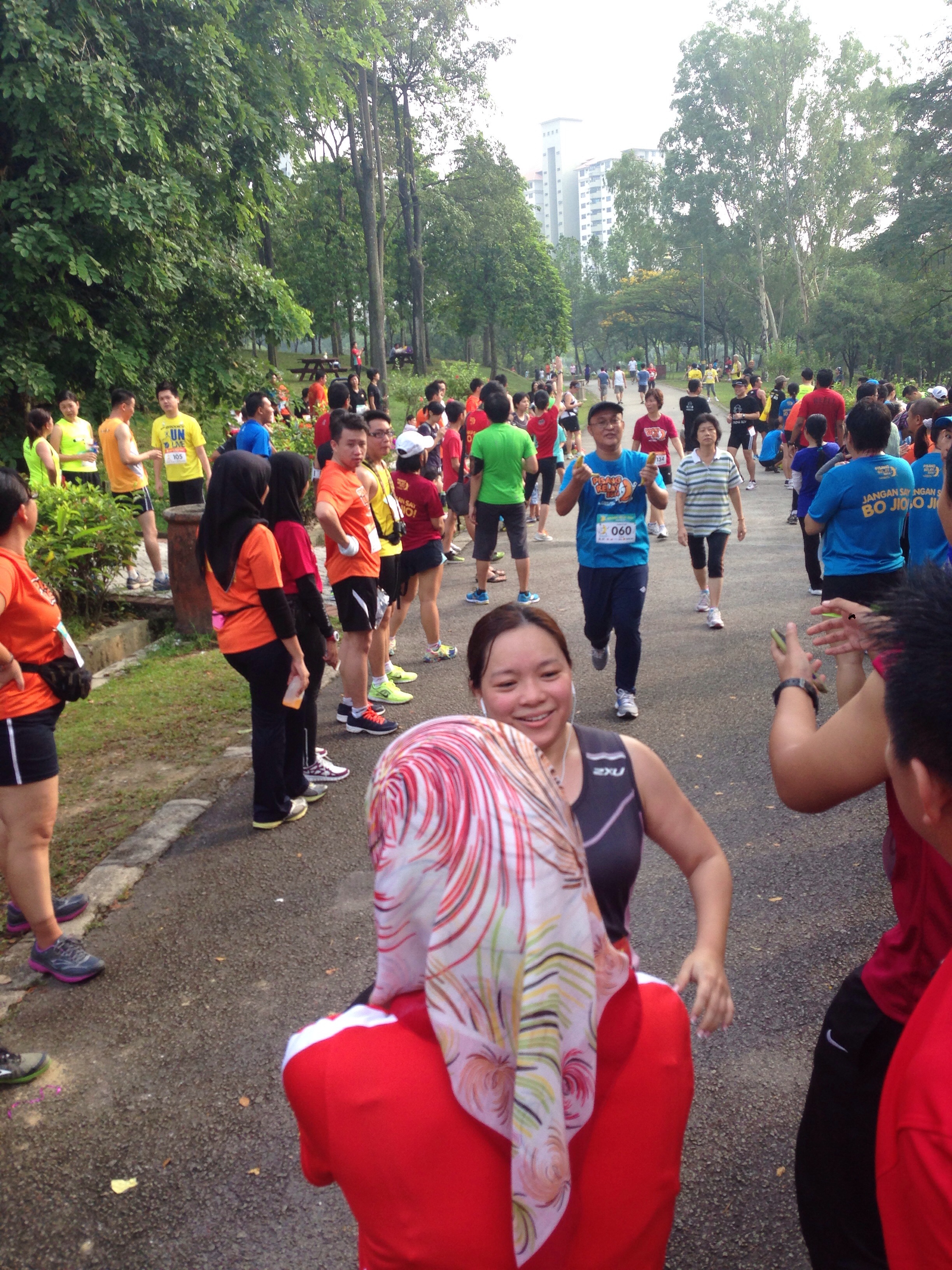 Relay was held at Bukit Jalil Recreational Park. Boy it was an undulating run. Each team supposed to complete 6laps (one lap distance is about 2.74km), and 3 of us in a team.