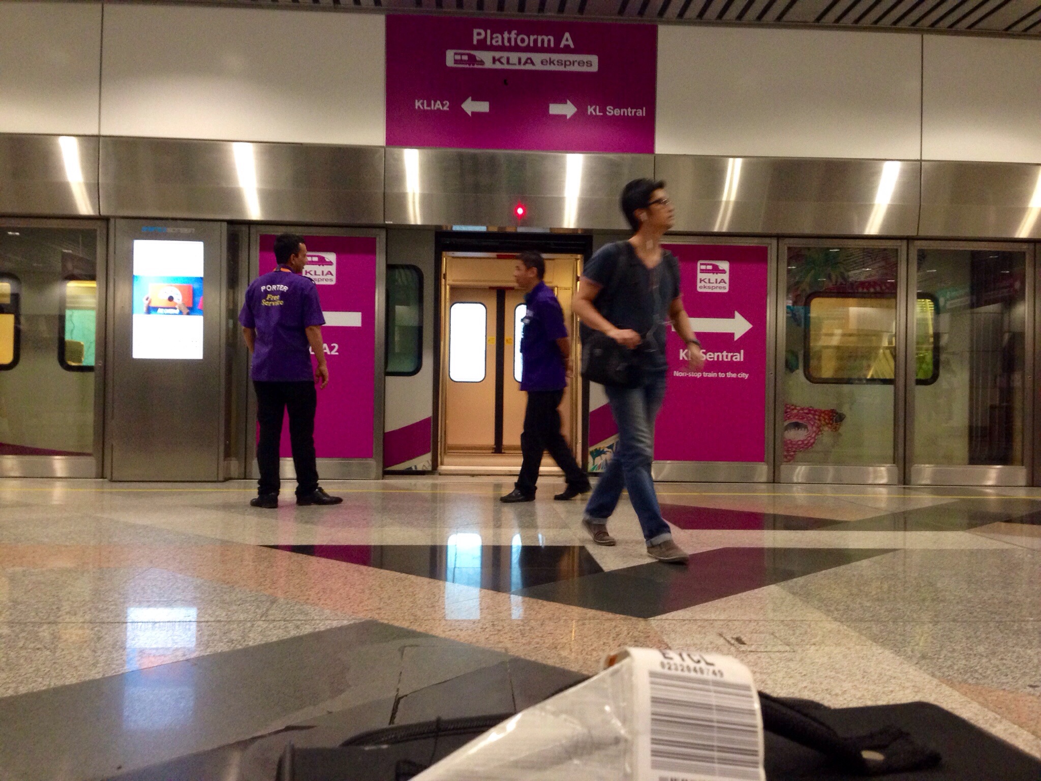 am waiting for the train back to KL Sentral, and the express signs justify the now-operational route to KLIA 2.