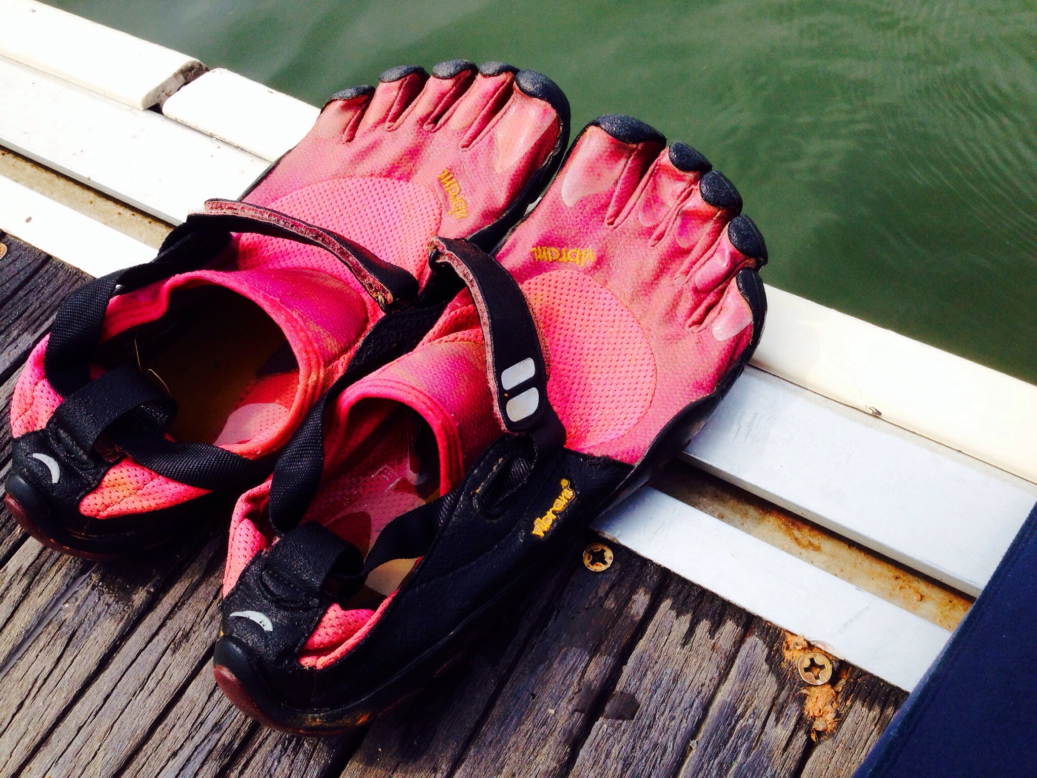 Chillin at the pontoon jetty after the run (And washing the dirt off fivefingers)