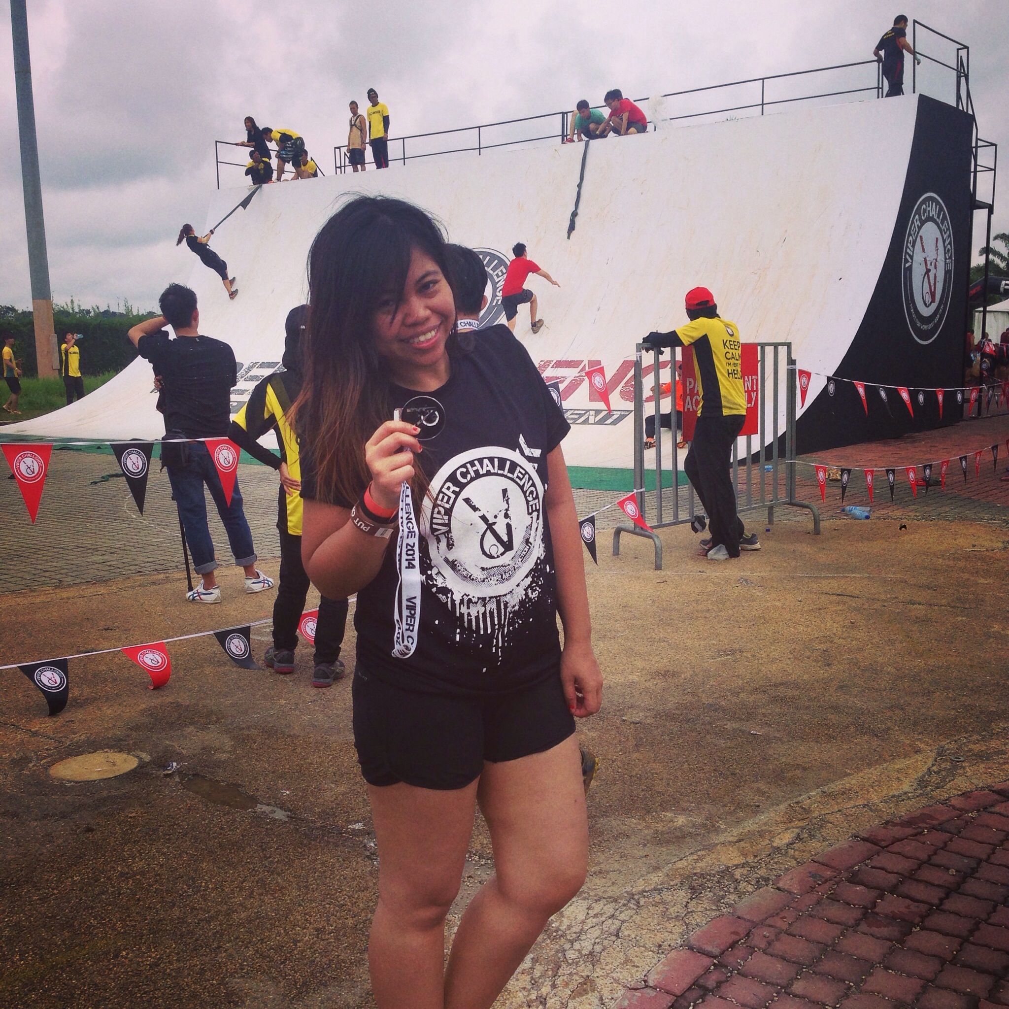 The finisher and the team. I didn’t take my iPhone with me during the run because we will be wet from all d trench pool, muddy area etc.