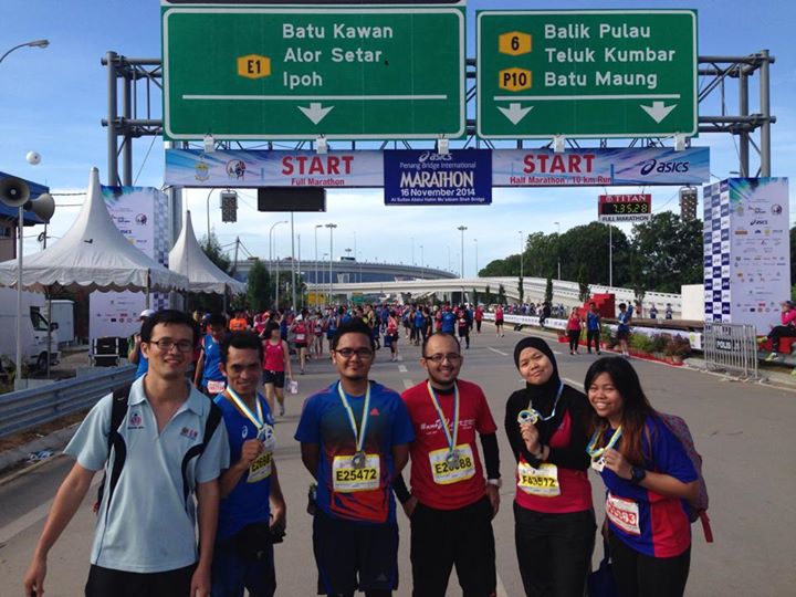 Again, for the third, oh wait.. Forth time, i participated in the annual Penang Bridge marathon. I started off with the fun run, with my used to be best friends, then 10k with my ex-colleagues, half marathon (HM) with my ex-colleagues too last year, and this year..