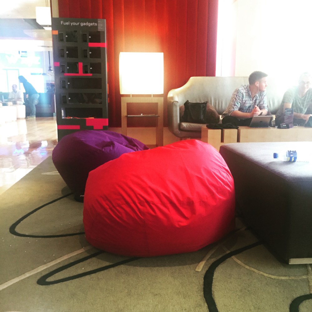 Charging station and bean bag at lobby!!