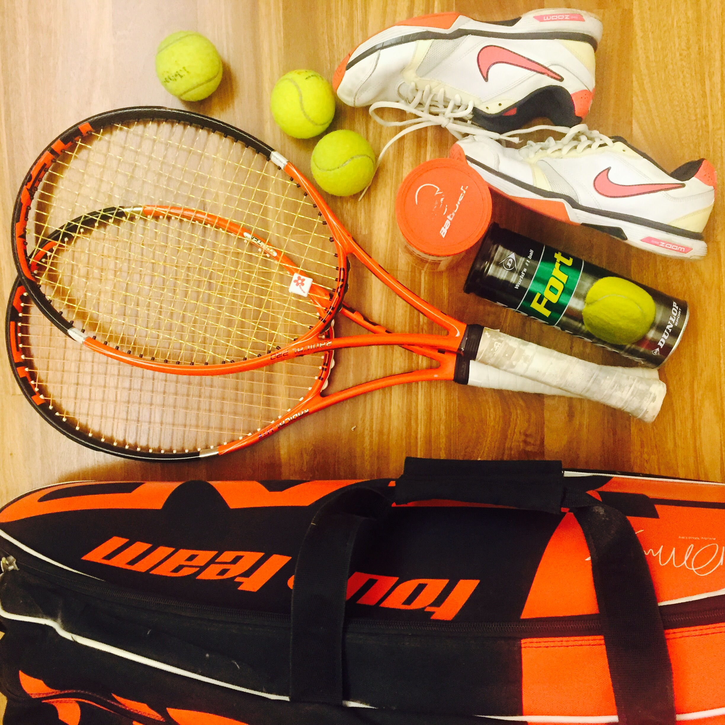 Second, is my tennis bag. My head radical racquets, i have 3 tubes of tennis ball actually, and my tennis shoes.