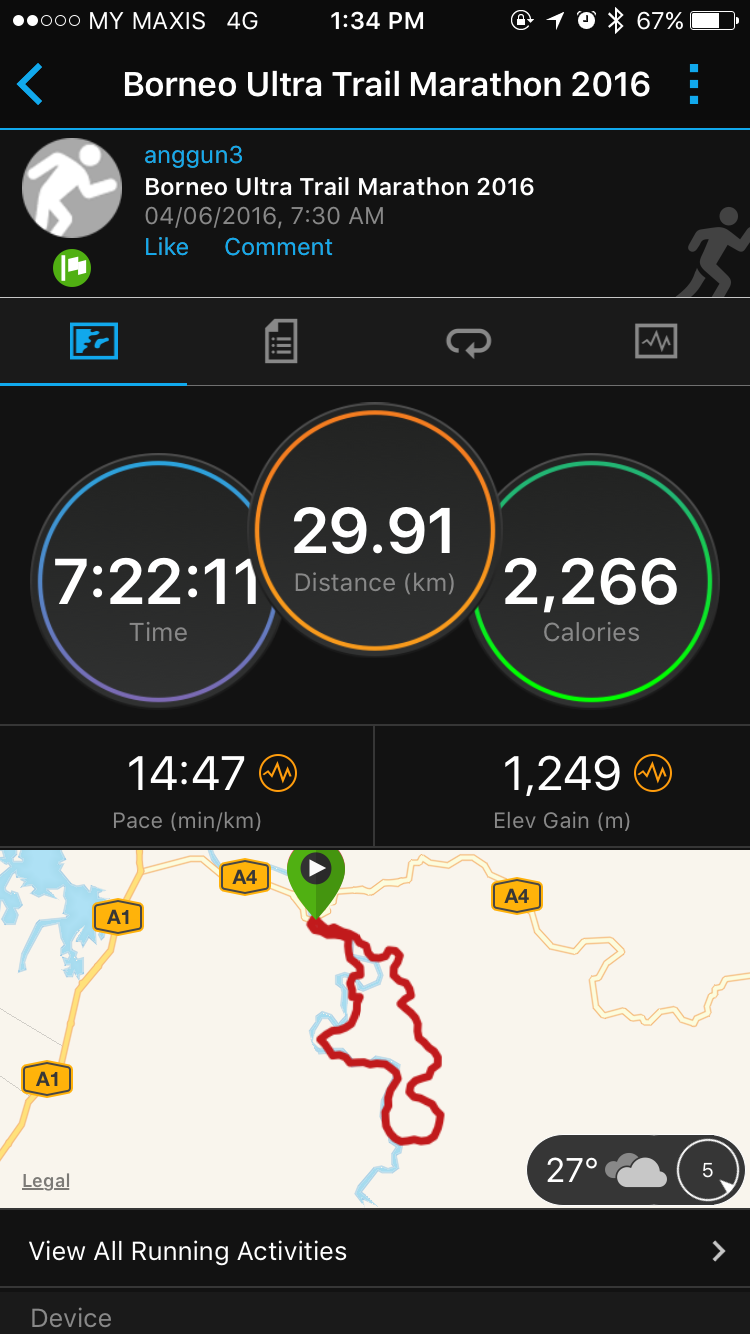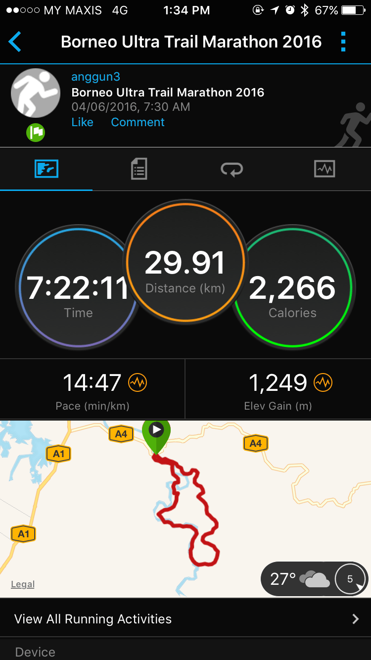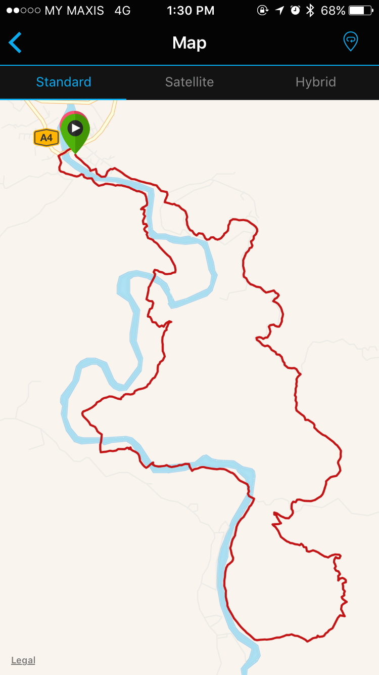 Map from my garmin watch, too many river crossing. Like, getting used to running at hanging bridge