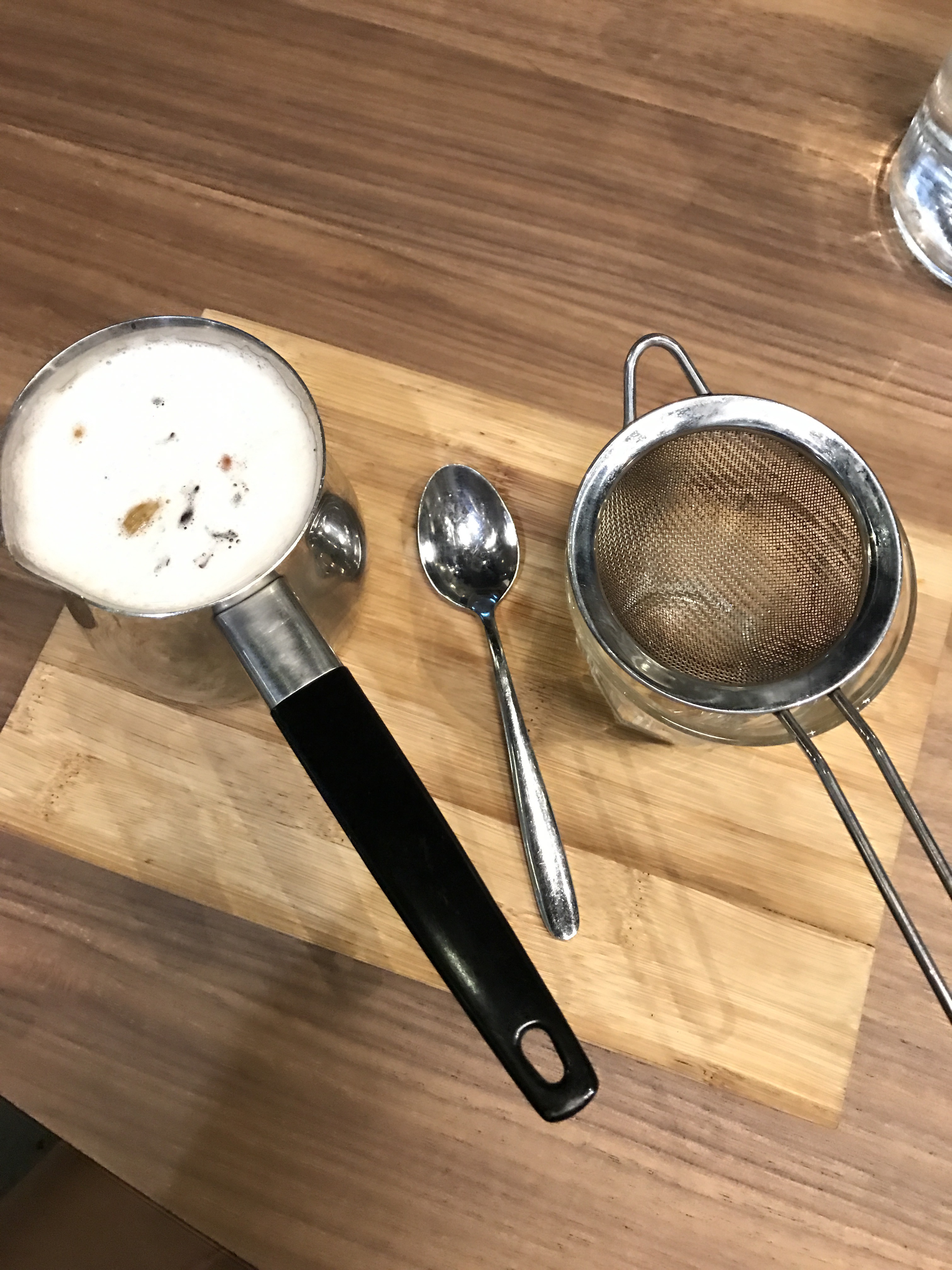 They serve the tea in the pot and let you pour it to your cup. Prank chai brand came from melbourne, but they jazz things up and came up with a hipster way of drinking a (literally!) masala chai that you can get at the roadside in anywhere in India.
