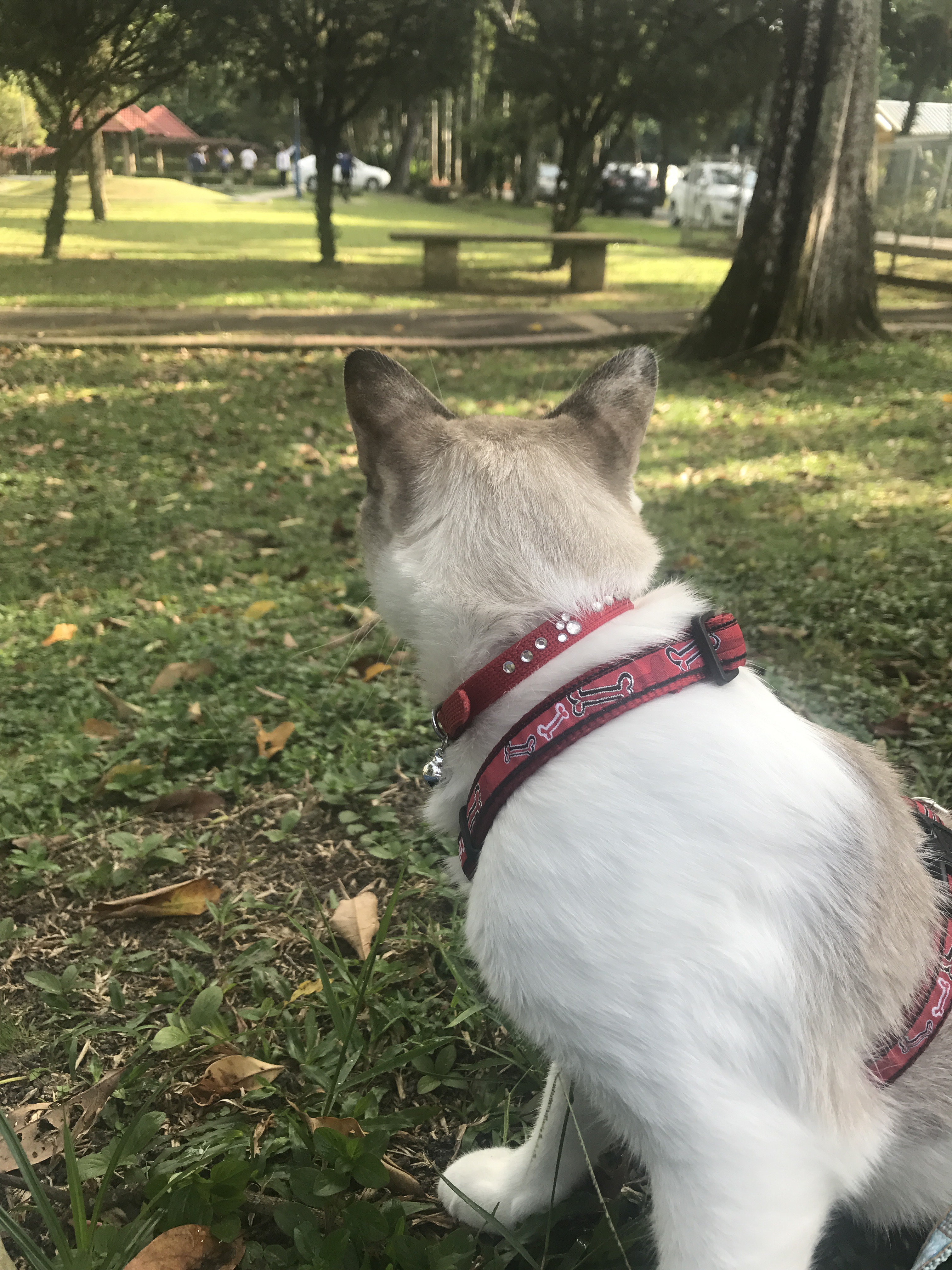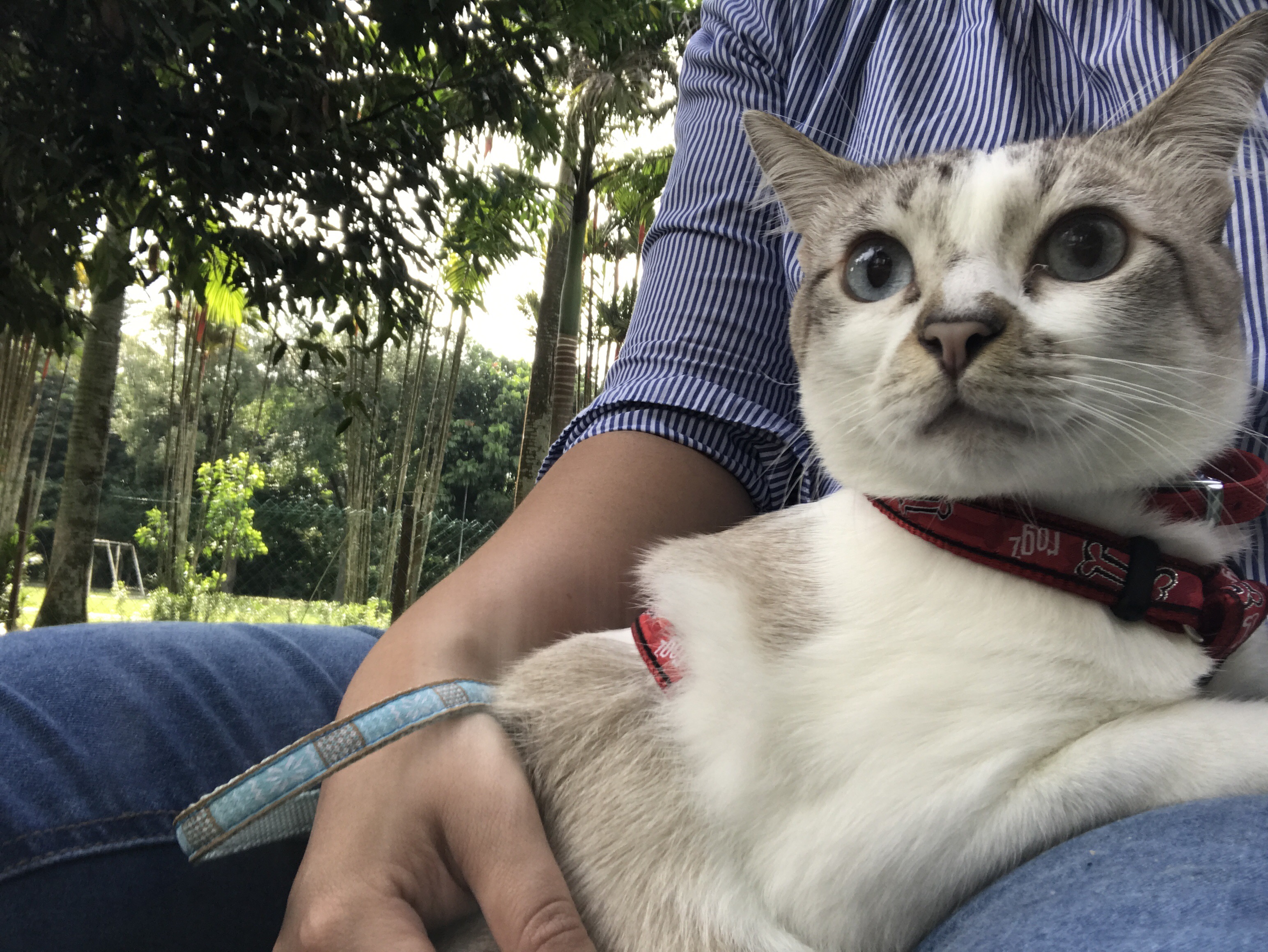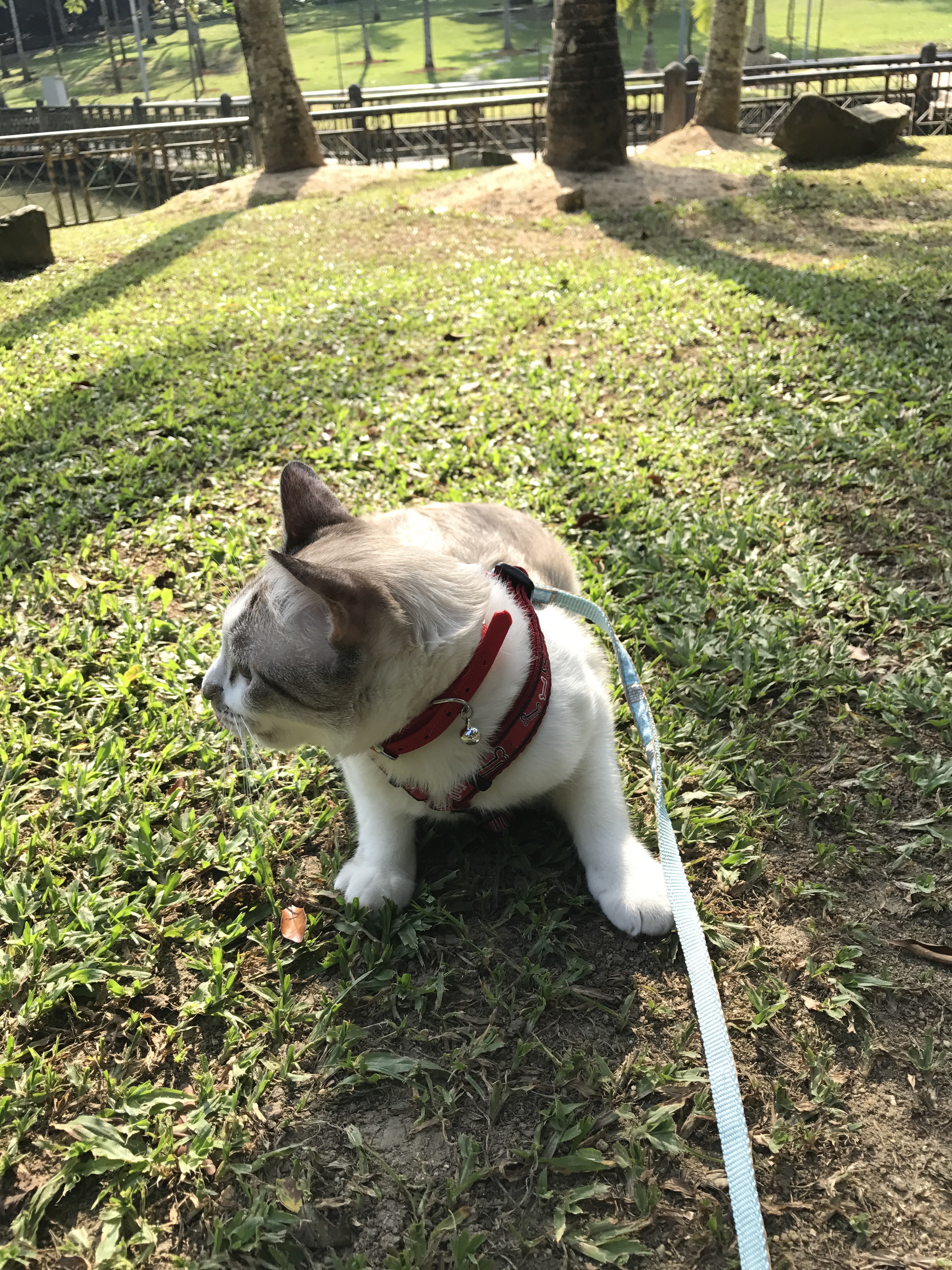 Anyway, I brought him an hour earlier so that not many people in the park doing their recreational activities. However, first time sticky going out to the park, Sticky scared shit of everything: the birds, kids with roller blades, peoples. Sticky stick to me and hide behind me. I think he was having panic attack that time as when he’s back in the car, in his carrier, he started hyperventilating. Gosh. Poor Sticky.
