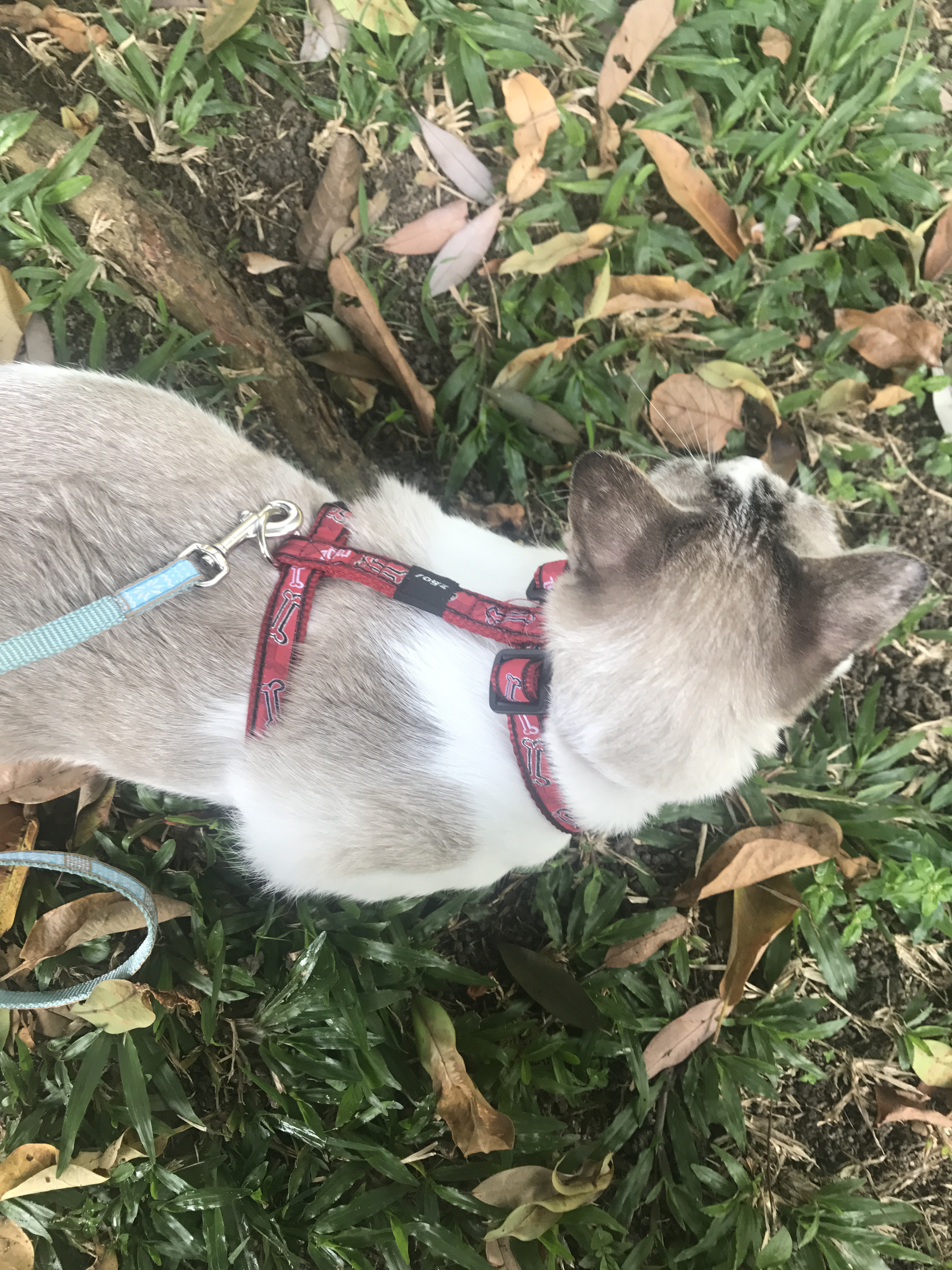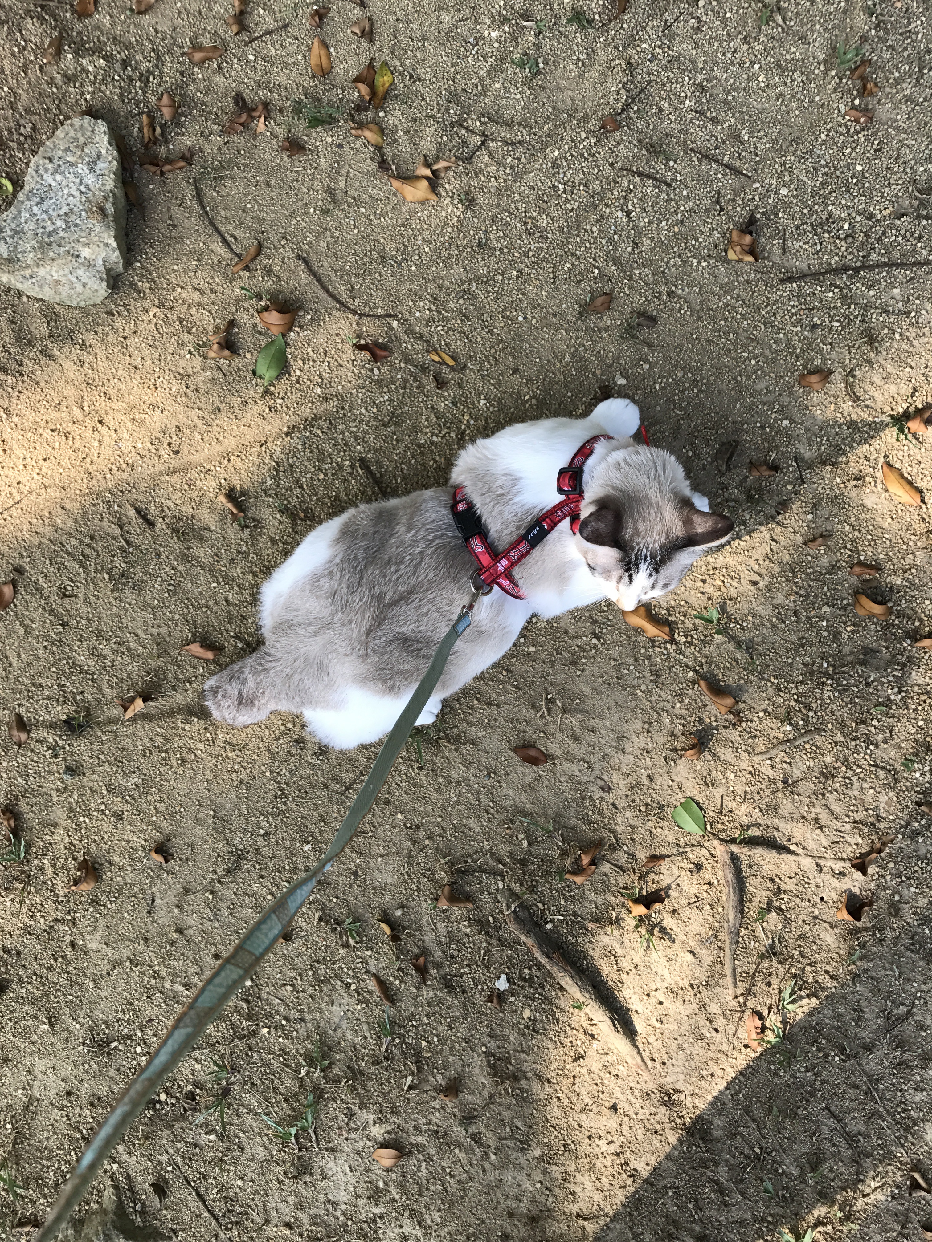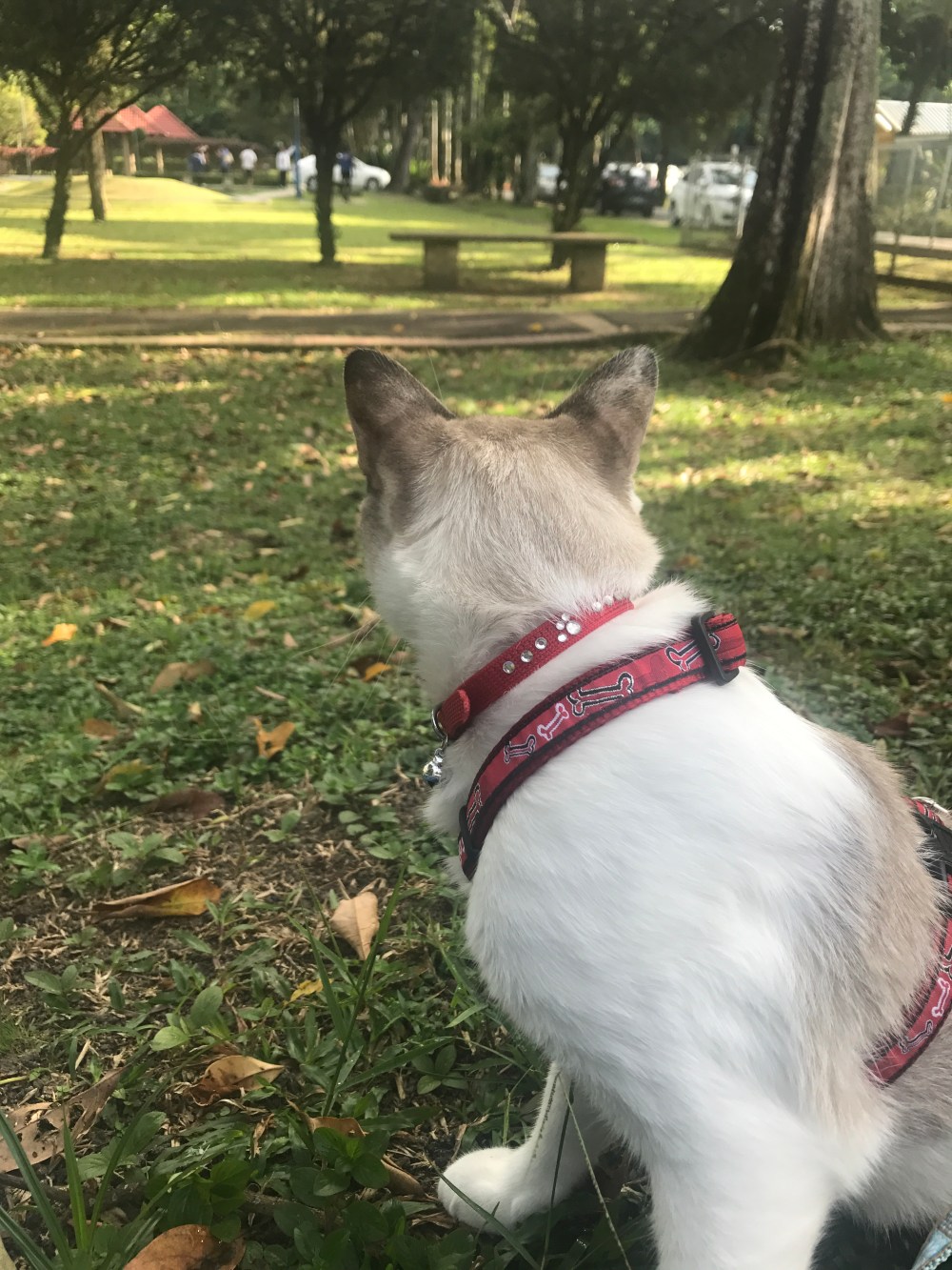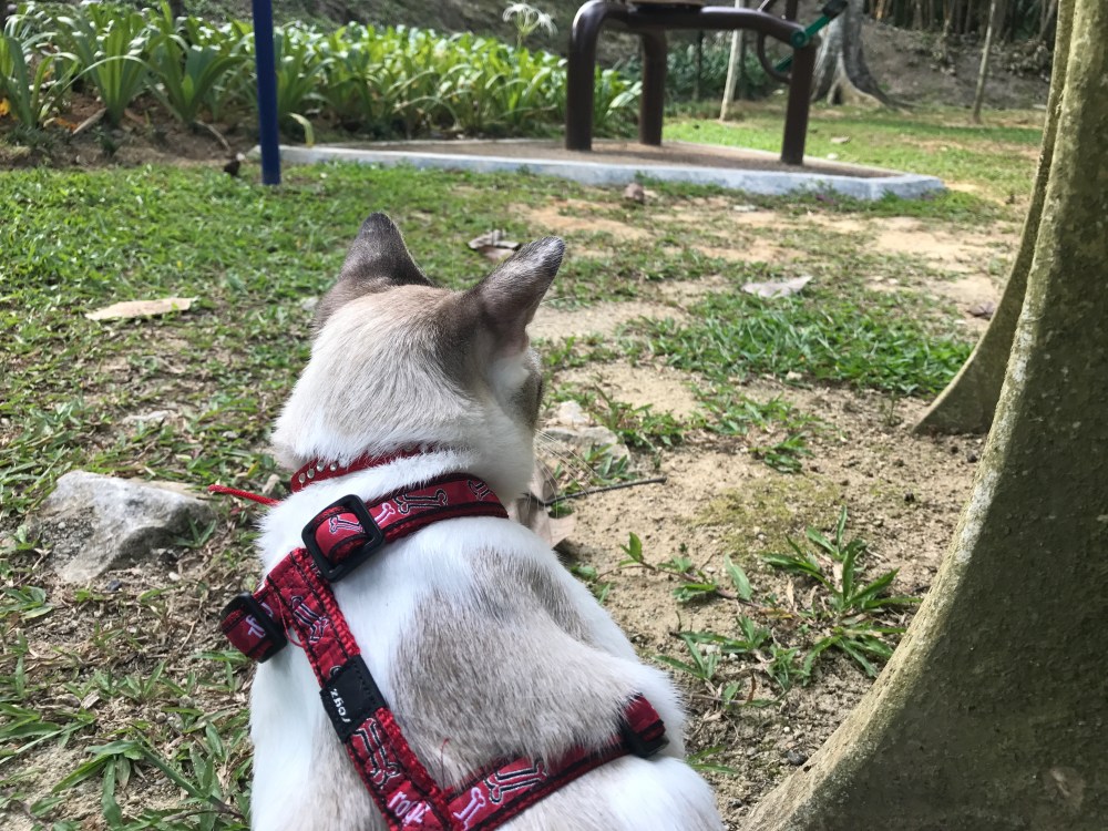 Anyway, I brought him an hour earlier so that not many people in the park doing their recreational activities. However, first time sticky going out to the park, Sticky scared shit of everything: the birds, kids with roller blades, peoples. Sticky stick to me and hide behind me. I think he was having panic attack that time as when he’s back in the car, in his carrier, he started hyperventilating. Gosh. Poor Sticky.